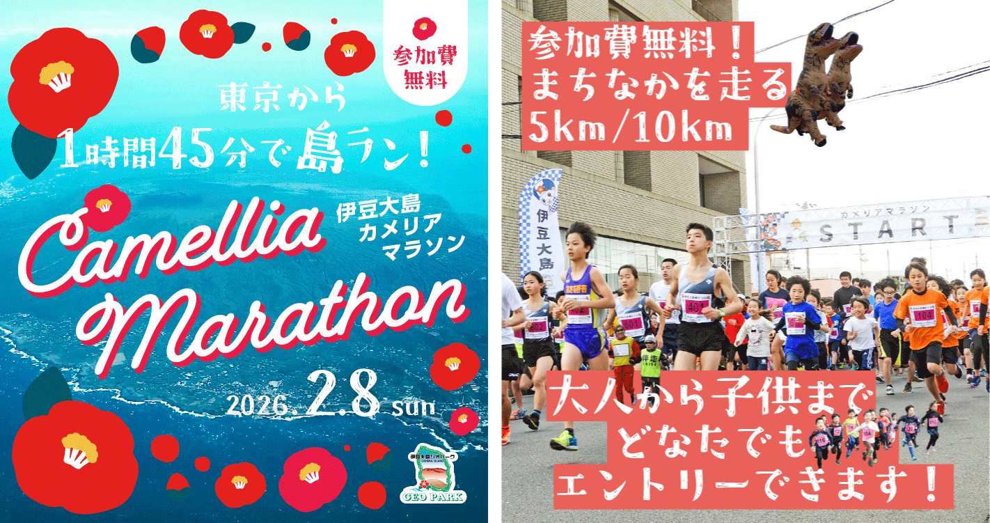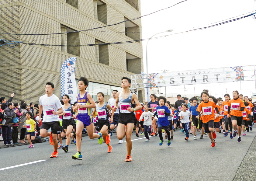 大島町 山田)もともとは観光協会が主催で始めたイベントで、現在は町役場が主催しています。島の一番大きなお祭りである「伊豆大島椿祭り」の期間中に開催していて、椿(カメリア)の季節に島の魅力を感じていただける大会です。昨年の参加者は約800名で、島内と島外が半々で、島内では子どもたちの参加も多くあります。現在は東京都の補助金を活用しながら、健康マラソンとしての意義も大きいイベントになっています。